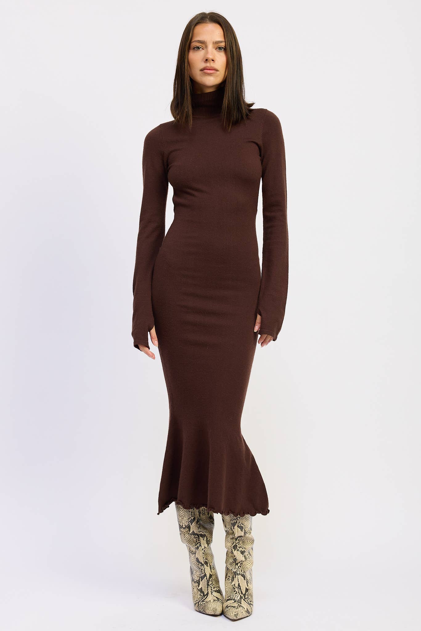 Nolan TURTLE NECK MIDI DRESS WITH BACK CUTOUT