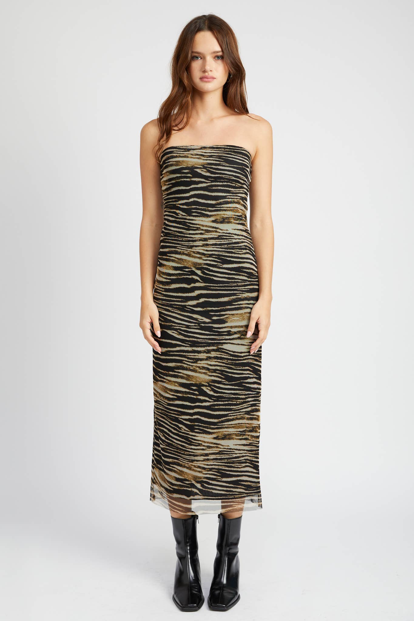 Heidi BODYCON MOCK NECK MESH LONG SLEEVE MIDI DRESS