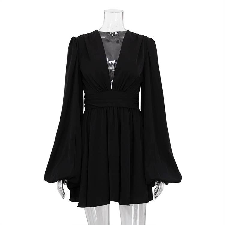 CHIC WRAP PANEL BUCKLE LONG SLEEVE MAXI DRESS-DD10840FO