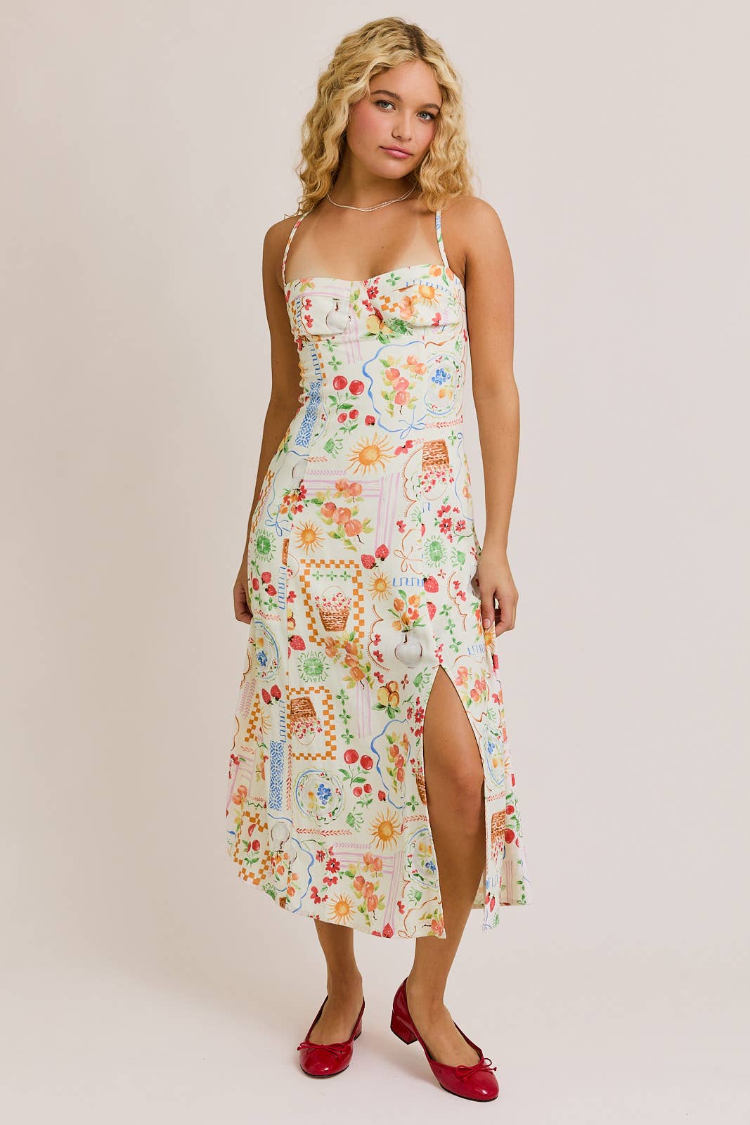 Tilly Fruit BUSTIER MIDI DRESS WITH SLIT