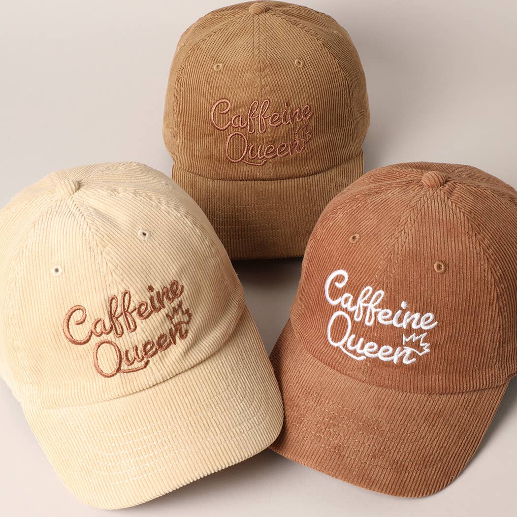 Caffeine Queen Letter Embroidery Corduroy Cap