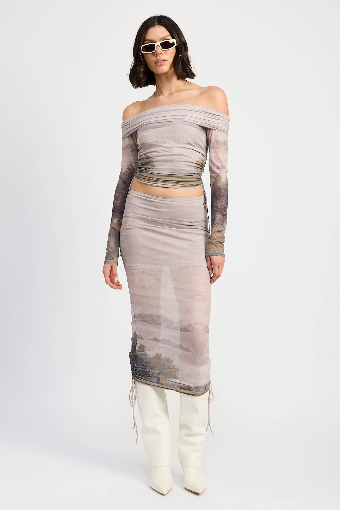 RUCHED MIDI SKIRT WITH DRAWSTRINGS