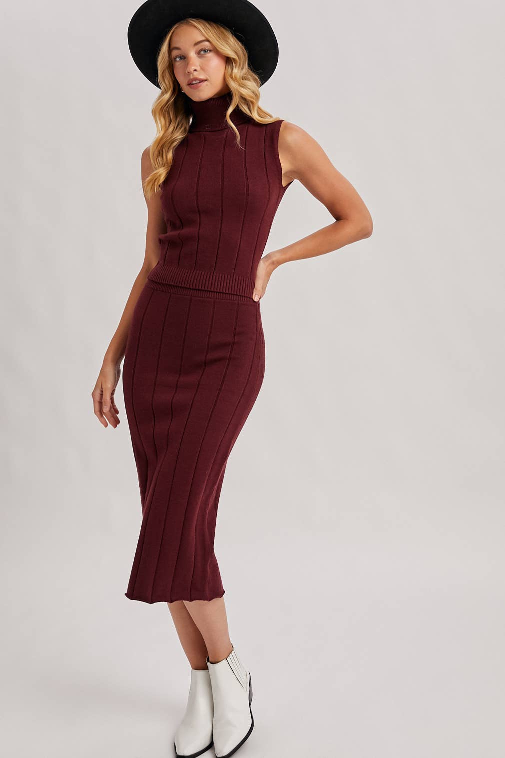 SLEEVELESS MOCK NECK AND PENCIL MIDI SKIRT SWEATER SET