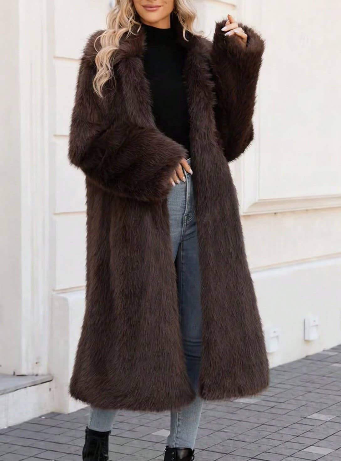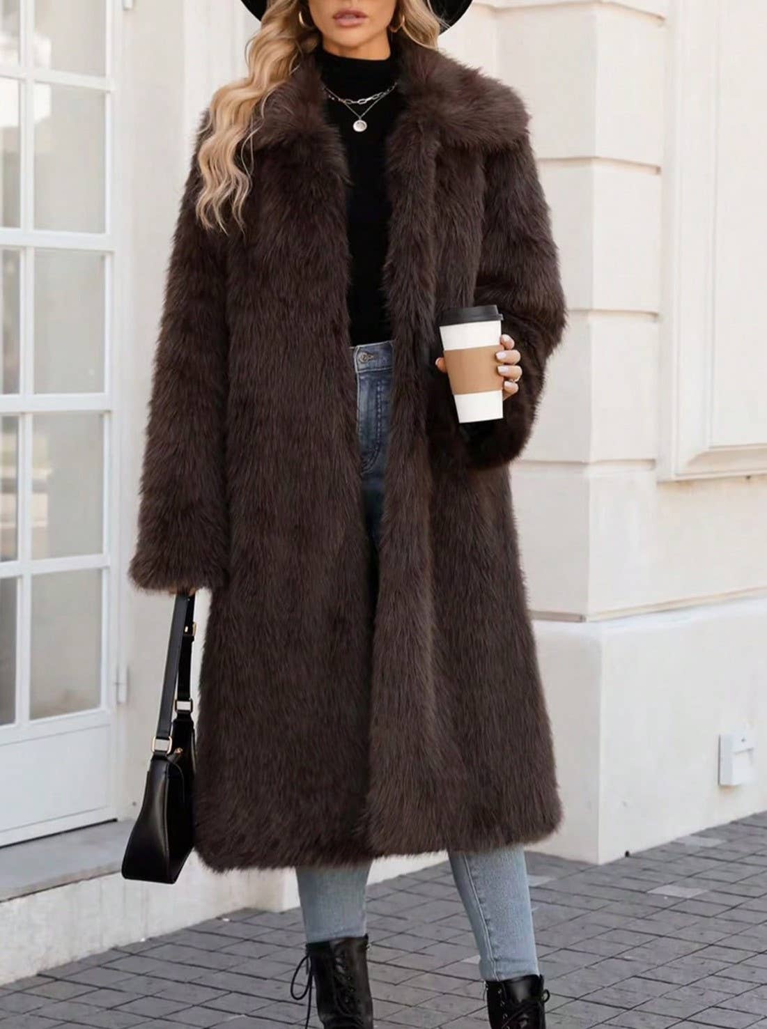 Blair Slouchy Stylish Lapels Long Faux-Fur Coat