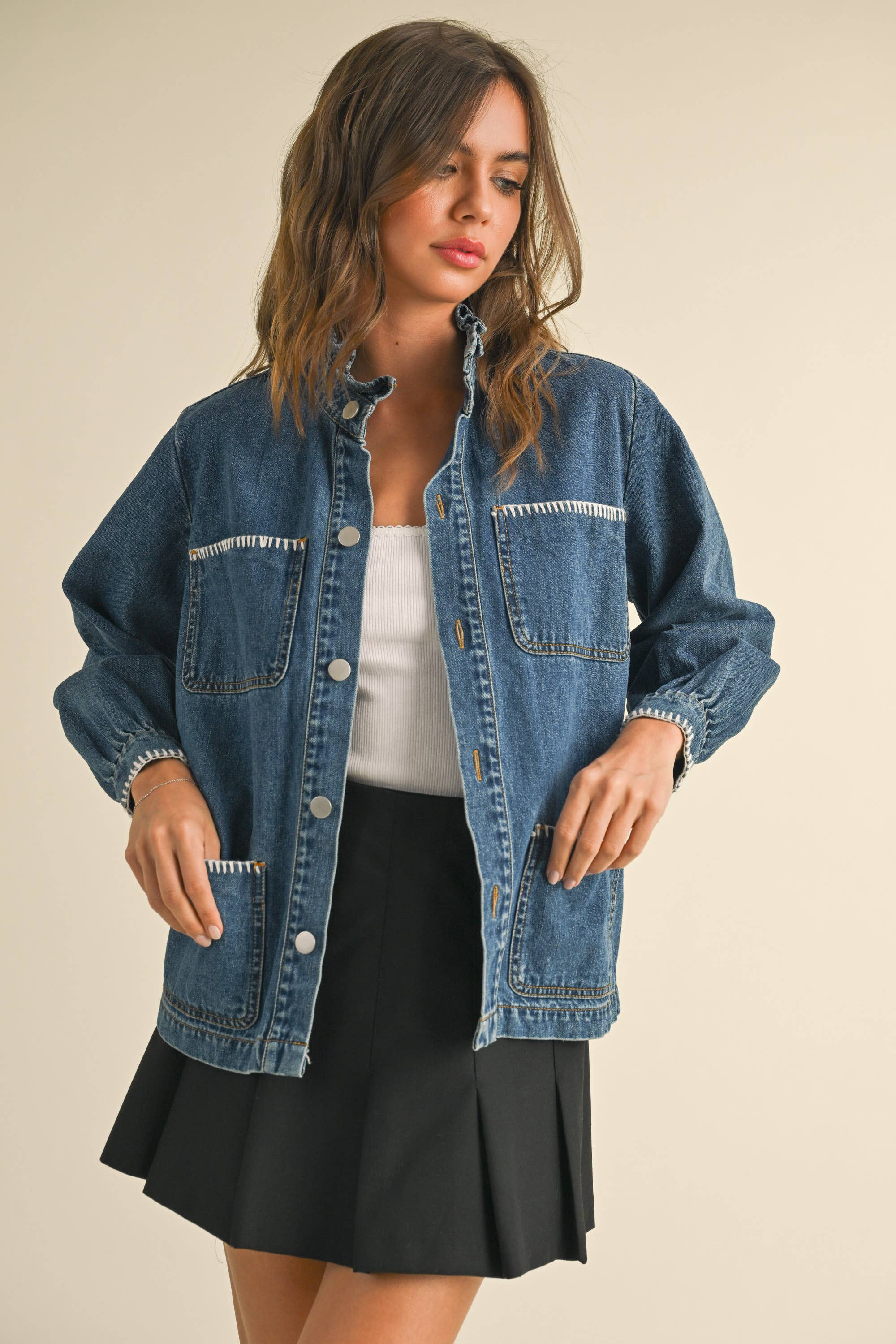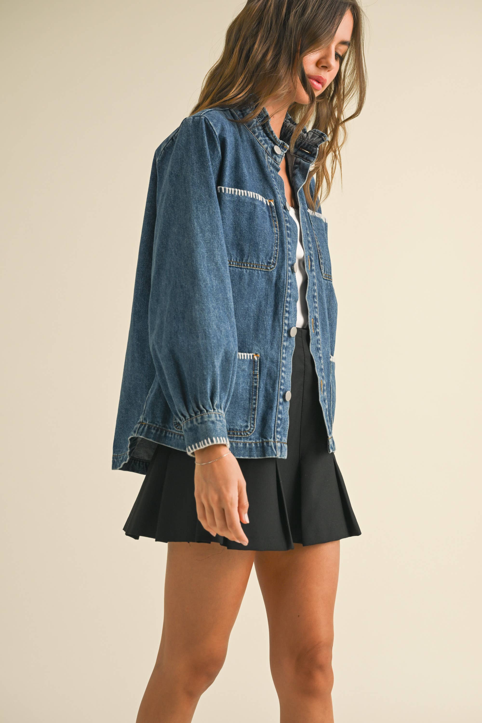Jill STITCH DETAIL RUFFLED DENIM JACKET